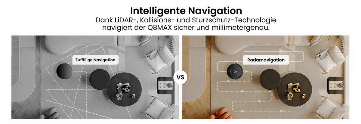 | Navigation | LiDAR-Technologie mit Kollisions- und Sturzschutz |