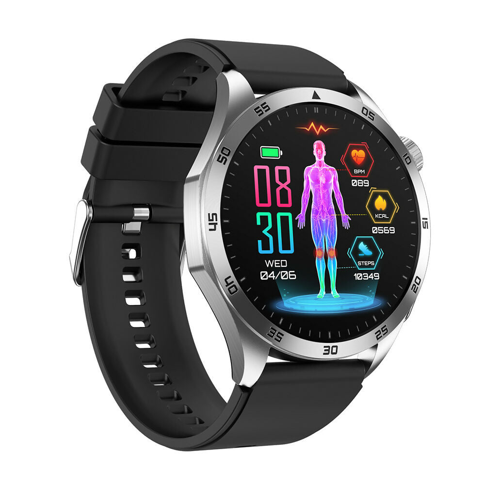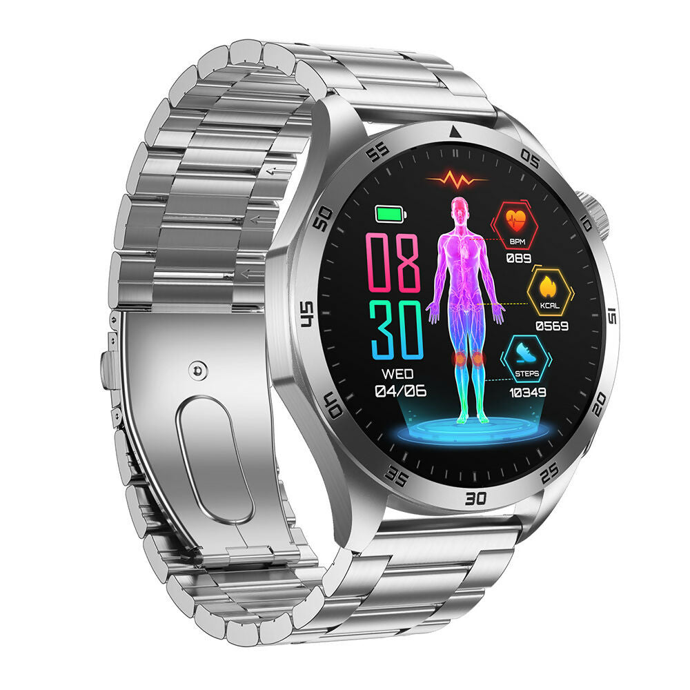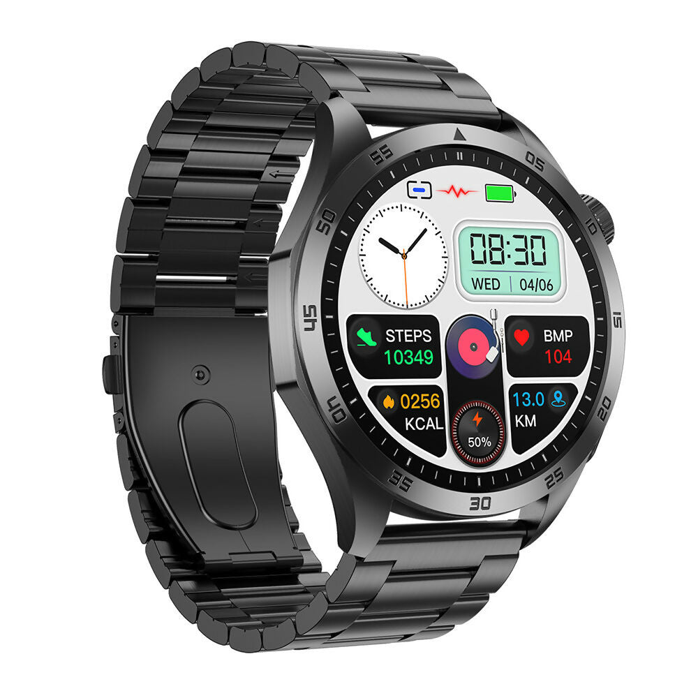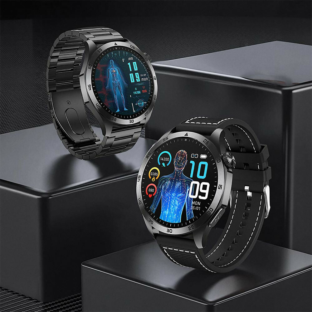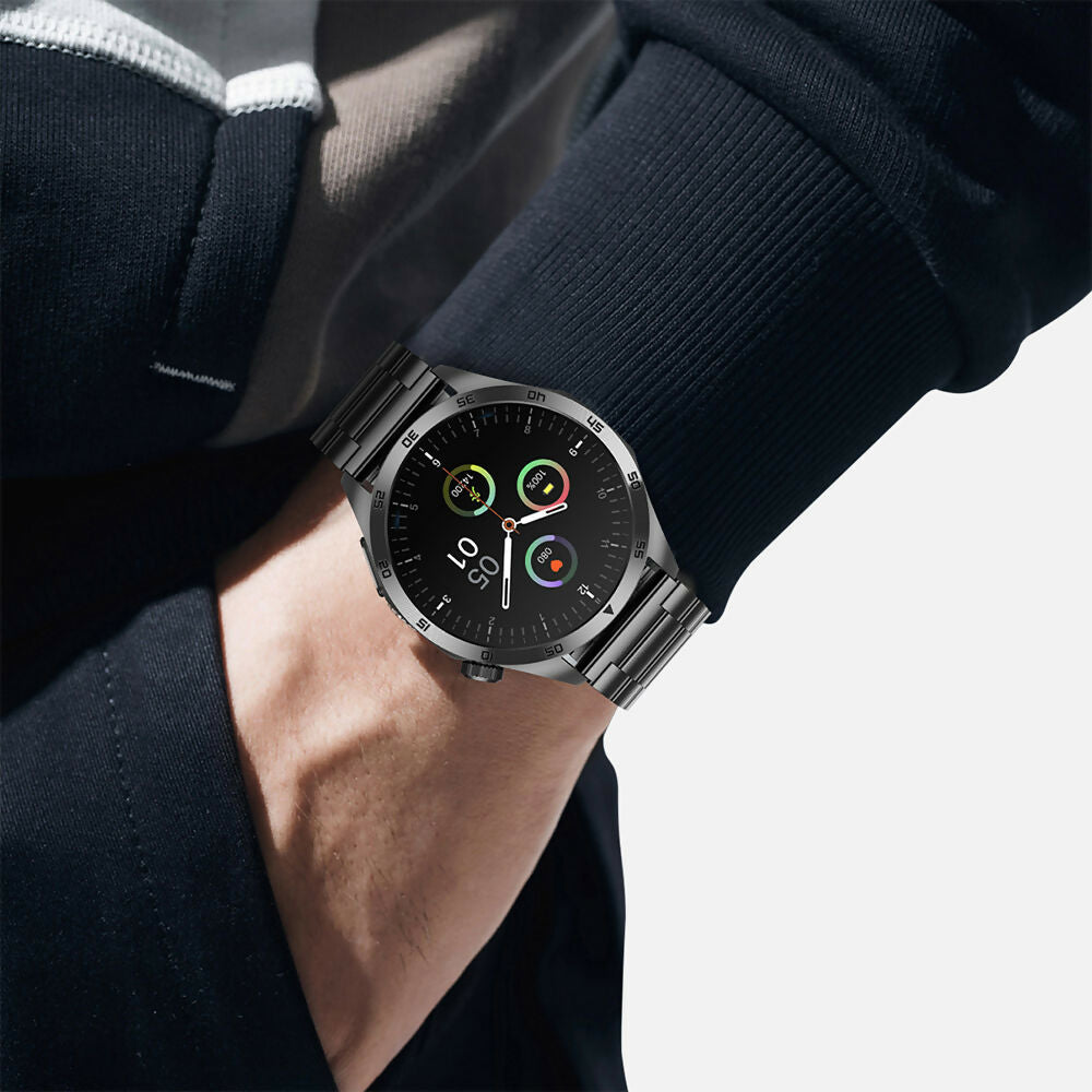 - ✓ Gesundheit im Blick: Herzfrequenz, Blutdruck*, SpO₂ (Infrarot+Rotlicht „True SpO₂“) sowie ECG/HRV, Stress- & Ermüdungserkennung.