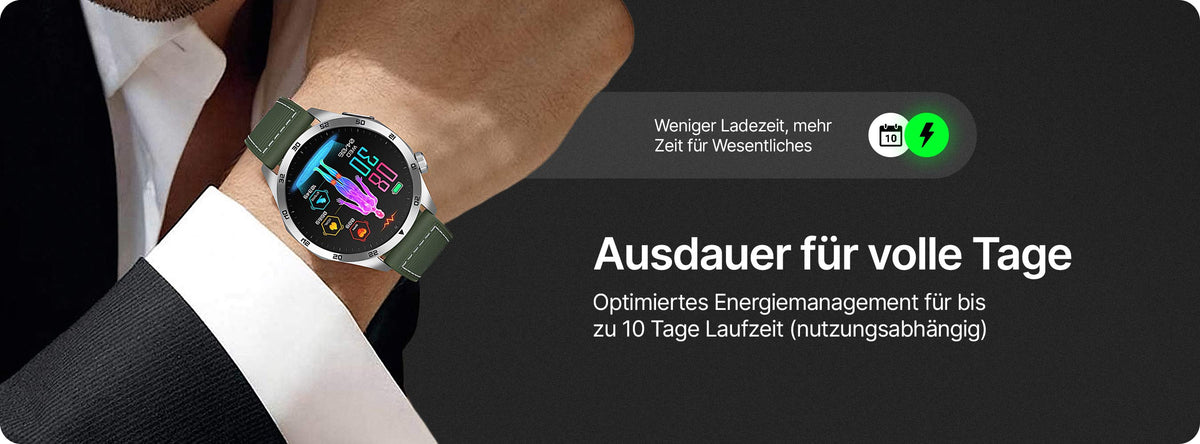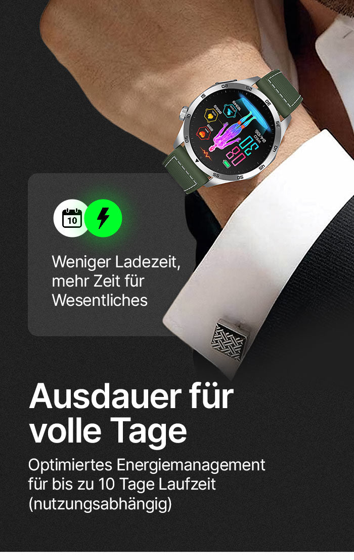 - ✓ Ausdauernder Akku: ca. 2–3 h Schnellladen, 5–10 Tage Nutzung, 20+ Tage Standby (je nach Einstellungen).