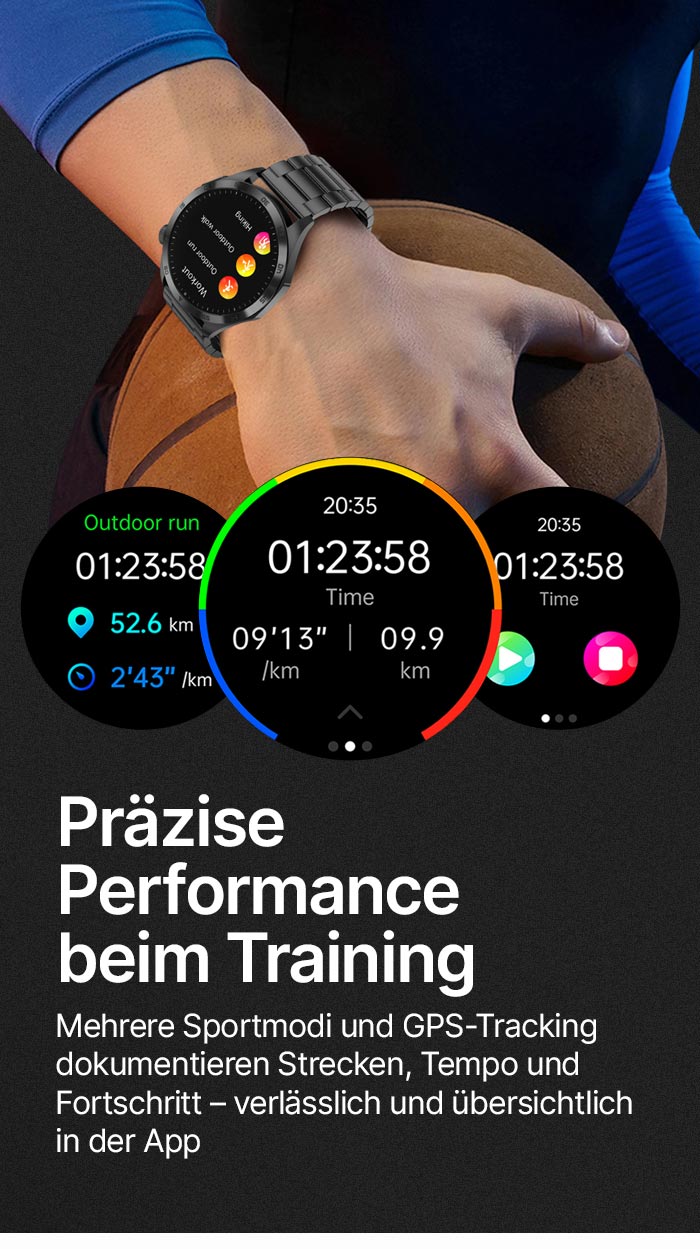 - ✓ Bluetooth-Anrufe: Mit HD-Stimme direkt über die Uhr telefonieren (Wähltasten, Kontakte, Anrufliste).