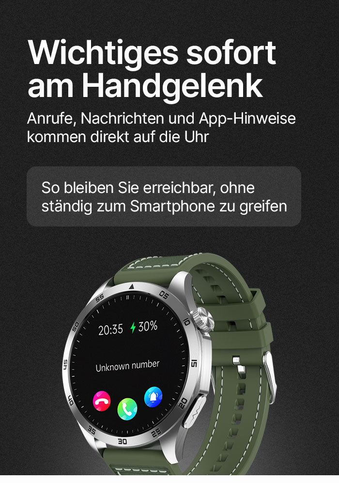- ✓ Benachrichtigungen am Handgelenk: Anrufe, WhatsApp, SMS & Kalender, ohne das Handy zu zücken.