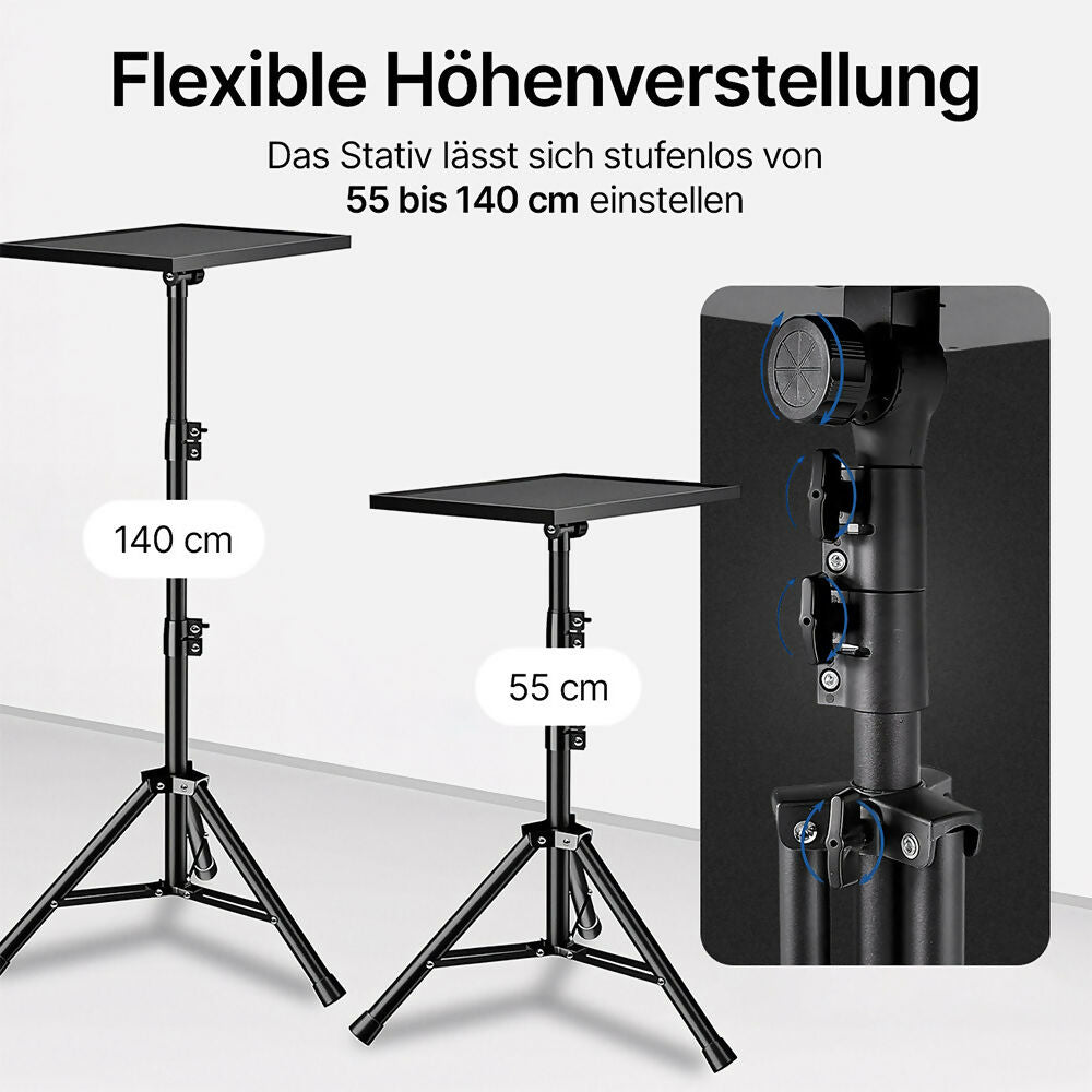 - ✓ Ein Stativ, unzählige Möglichkeiten. Dieses Stativ bietet dir immer eine perfekt eingestellte und sichere Basis für deinen Beamer – egal, wo du bist. Ob im Wohnzimmer, im Garten oder auf dem Campingplatz – in Sekunden hast du dein perfektes Kinoerlebnis aufgebaut. Und weil dieses Stativ so vielseitig ist, bietet es auch für Laptops, DJ-Equipment oder andere Geräte einen verlässlichen Platz.