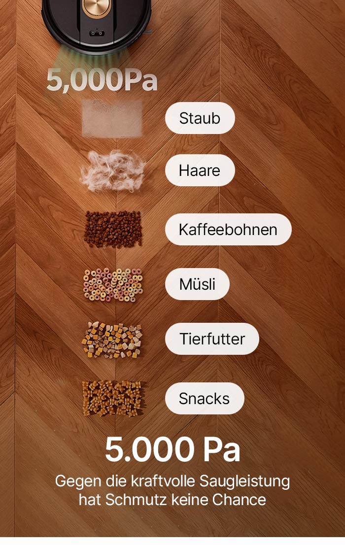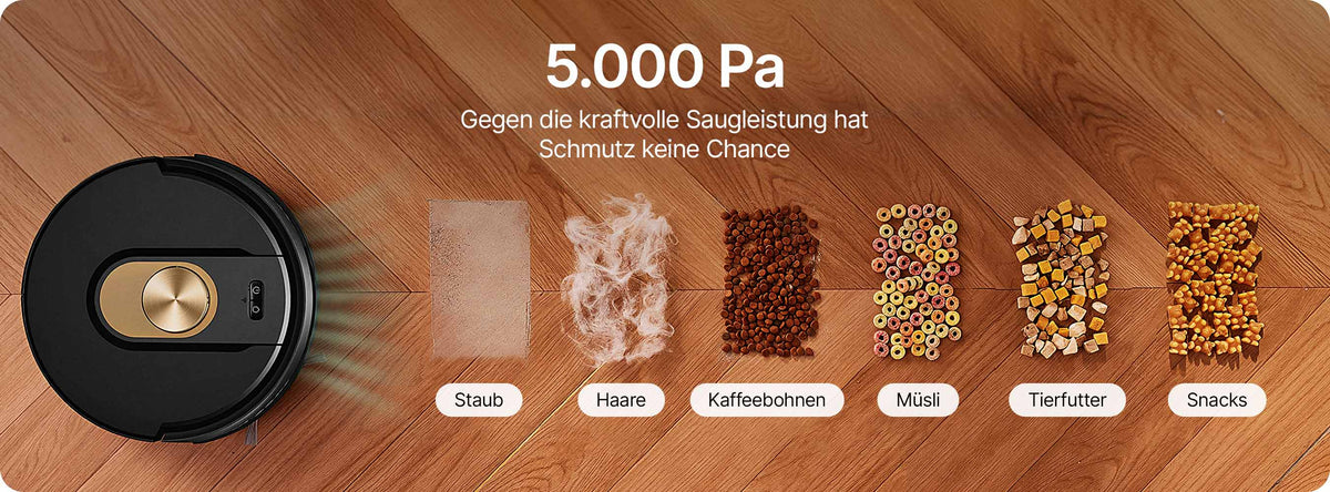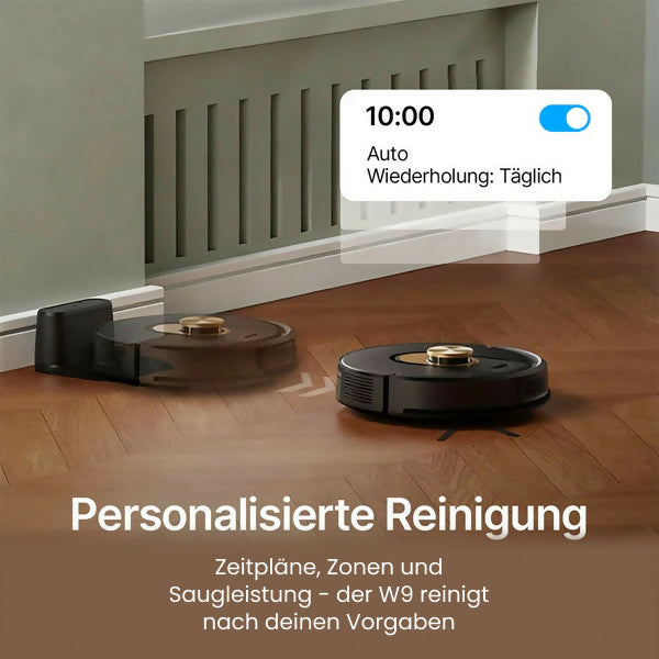 - ✓ Kraftvolle Saugleistung. Tierhaare, Staub und Krümel haben keine Chance – mit bis zu 5.000 Pa Saugkraft entfernt der W9 selbst hartnäckigen Schmutz. Auf Teppichen aktiviert die intelligente Boost-Funktion automatisch volle Power – für gründliche Reinigung bis tief in die Fasern.
