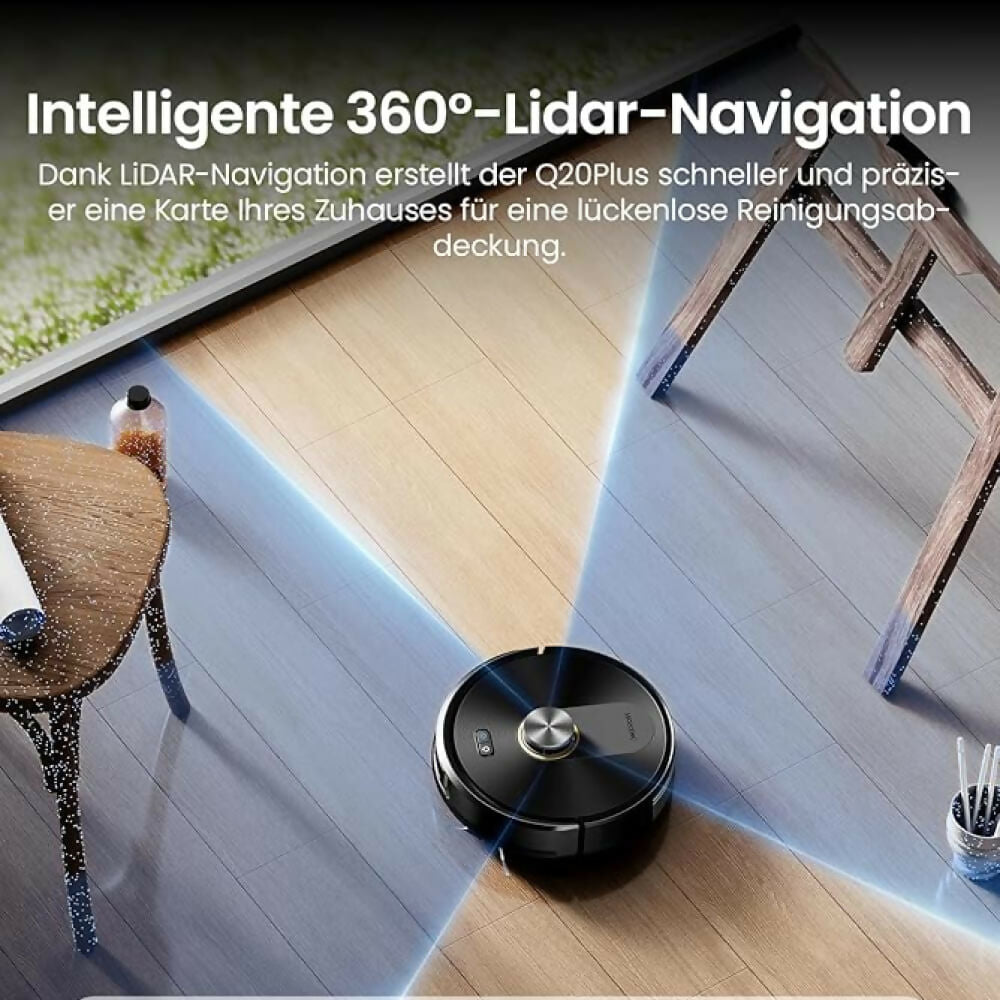 - ✓ Intelligente Navigation mit KI & LiDAR: Dank moderner LiDAR-Technologie und reaktiver KI erstellt der Saugroboter innerhalb von 15 Minuten eine präzise Karte Ihrer Wohnung. Er scannt bis zu 2160-mal pro Sekunde, erkennt Hindernisse wie Kabel, Möbel oder Treppen zuverlässig und plant effiziente, systematische Reinigungsrouten.
