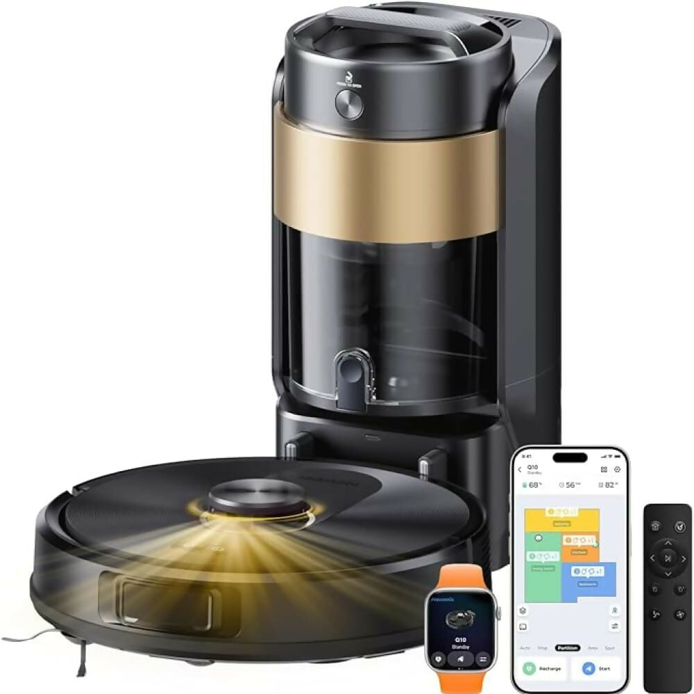 - ✓ Beutellose automatische Entleerung: Der Saugroboter entleert seinen Multi-Zyklon-Staubbehälter nach jeder Reinigung automatisch in den 4-Liter-Auffangbehälter – in nur 10 Sekunden. Bis zu 90 Tage wartungsfreier Betrieb ohne Staubbeutelwechsel, sparsam und umweltfreundlich.